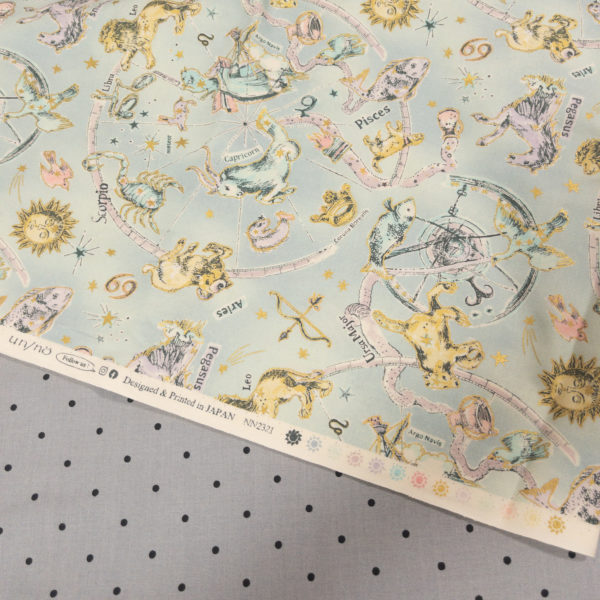 大塚屋では娘が好きな星座柄のシーチング。この色、昔のMIlKみ感じる🥰