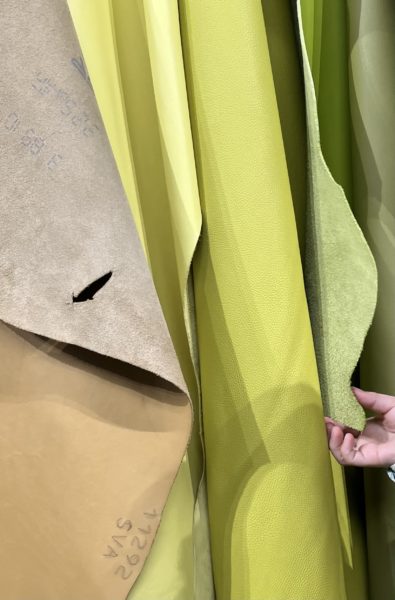 会場内には触ることのできる展示もありました。こちらは革がずらっと吊り下げられている部屋。