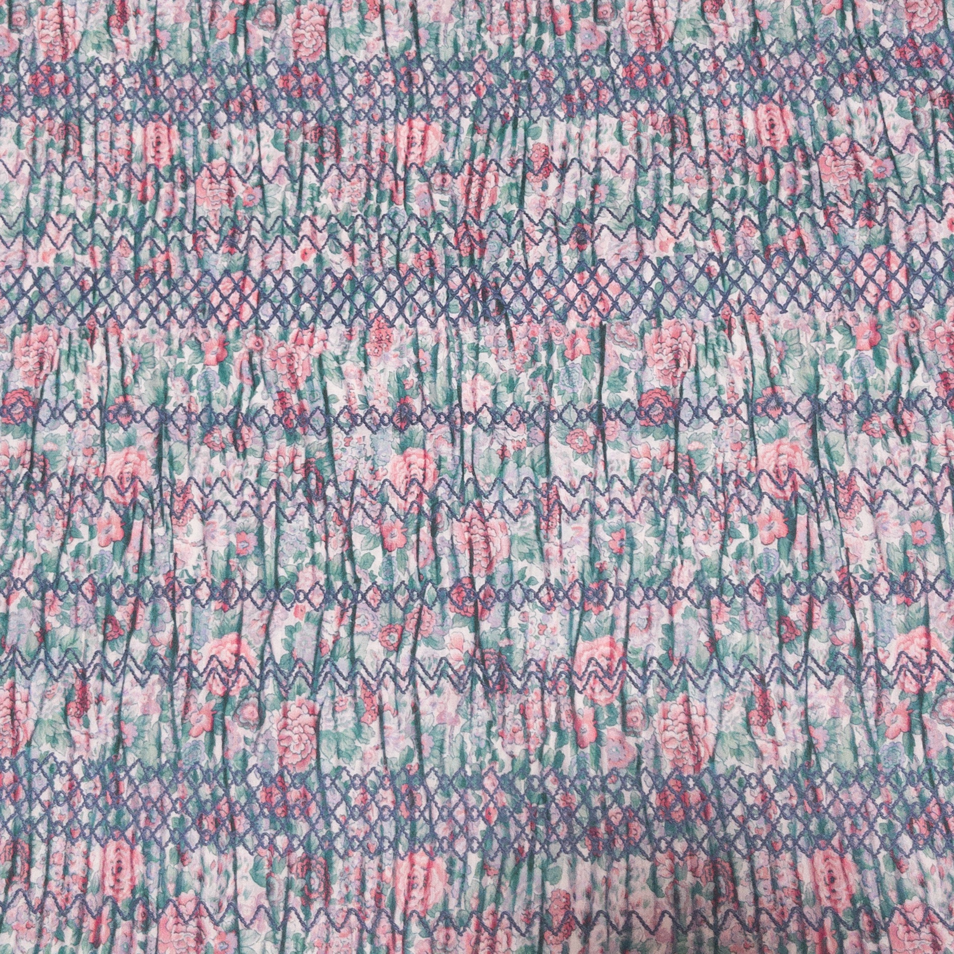 スモッキングも陰影も全てプリントなの面白い。ウエストドローストリングのワンピースも可愛いなぁ☺️