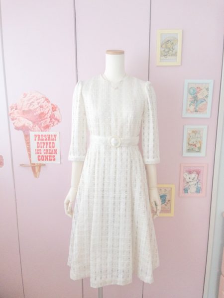 ウエストのベルトもなかなか悩んだ。二枚重ねて縫うと厚みが出るし、地の生地のないレース部分はへにょッと折れるしで試作試作、もう生地が残っていなくて。最終的に端を折ってペタシャムの内側にくるように叩いて作りました。下になったペタシャムがふちどりみたいになって可愛い。