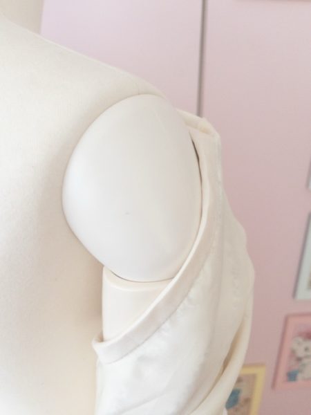 バックルも予定では四角だったんだけれどバックルの幅とレースの幅が中途半端で丸に変更。襟ぐりもボウタイにしたかったなぁ。やりたいこと詰め込もうとするともっと長さがいるね。