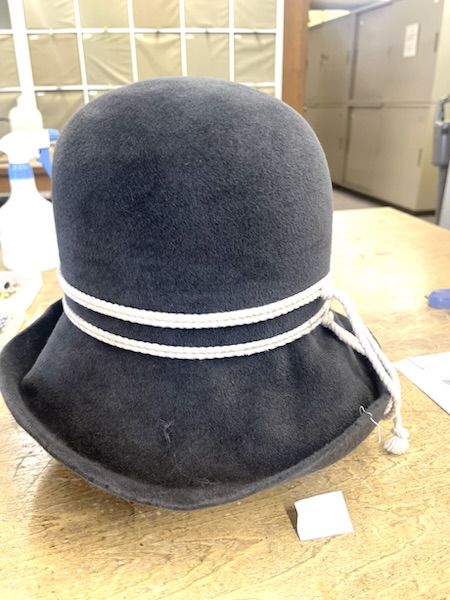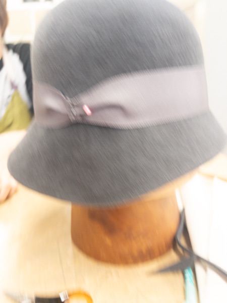 帽体に蒸気をあて、温かいうちに木型に沿わせてぎゅむむっと伸ばす。さっきまでは伸びそうになかったフェルトがぐぐぐっと伸びてびっくり。