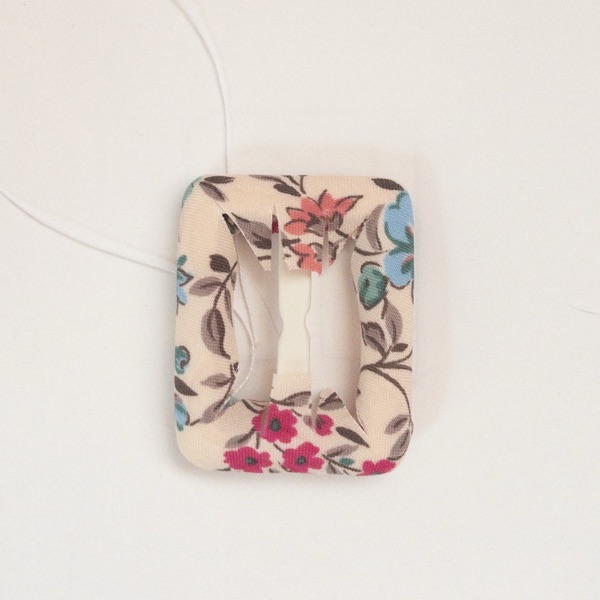 小花柄のボウタイワンピースに合わせる共布バックルを作り始めました。