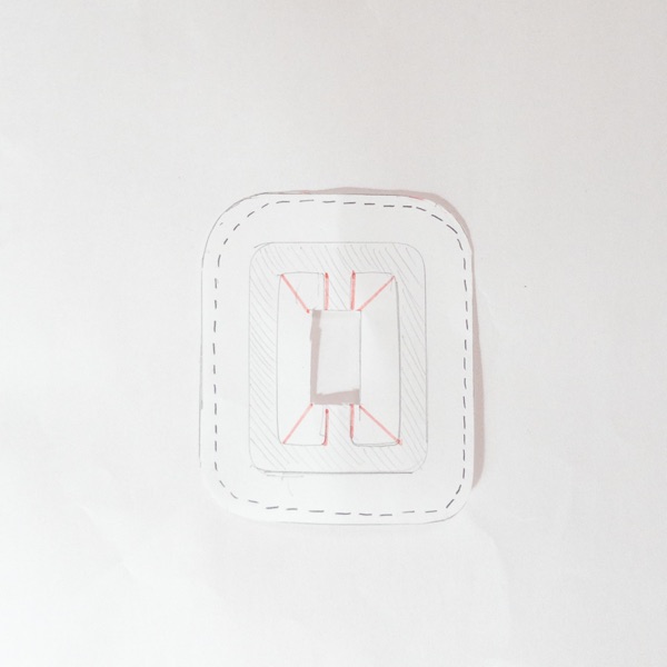 点線部分はぐし縫い、赤いラインは切り込みを入れます。ぐるっと内と外と切込み部分にほつれ止めピケを塗りました。
